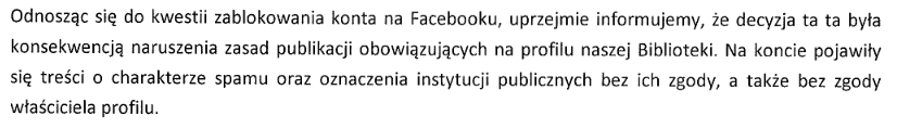 Nie dość że w przysłanym jednostronicowym pdf-ie ma liczne błędy dostępności to jeszcze według vice dyrektorki Biblioteki (zarządzające stanowisko w instytucji opartej na wiedzy które powinno wykluczać mądrych inaczej) trzeba mieć zgodę instytucji publicznych na oznaczanie ich w poście na fejsgłupie.